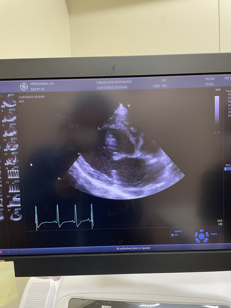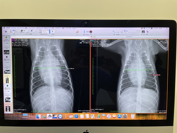 うーちゃんの心臓です。それぞれ右に比べて左の画像の心臓が肥大していて、これも症状の進行の影響だと主治医の先生より説明を受けました。