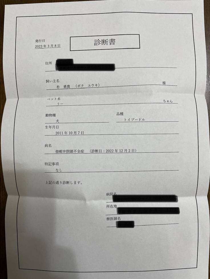 うーちゃんを僧帽弁閉鎖不全症から救ってあげたい!