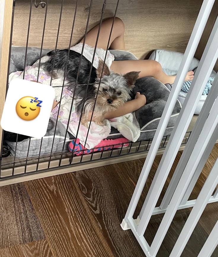 やんのハウスに入り一緒に寝ていました♥ぱんちゃんのことをすごく心配している3歳の娘。