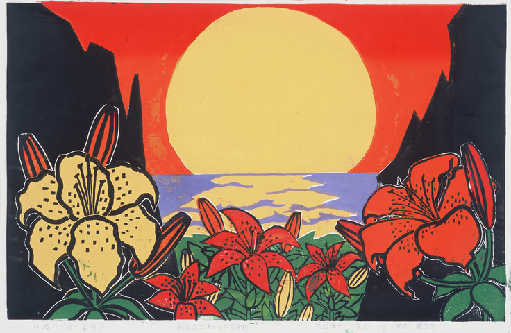 作品名 「佐渡の夕日と岩百合」