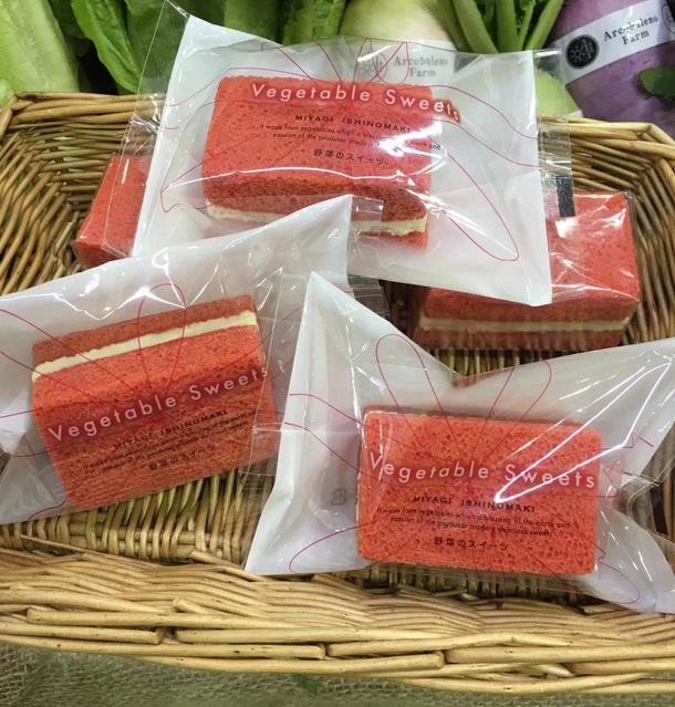 100%野菜から出した鮮やかな色が特徴で、しっとりとした食感の中にほんのりと野菜本来の味が感じられるケーキです。