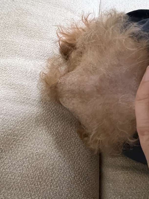 ぱっと見は普通?と思いきや、体は骨が浮いてガリガリです。体毛も薄いですが特にお尻や尻尾の毛はまだらです。背骨もアーチのように曲がっていますがこれから元気になって欲しいです。