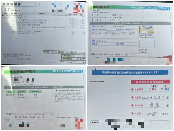 これから予定しておりますワクチン等検査予防を始めていきます。フィラリア等悪い菌はおらず無事1回目のワクチンをうちました。