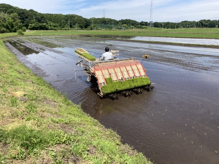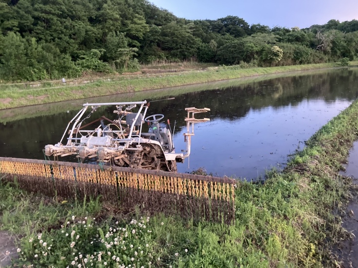 [田植え前除草の除草機、ほにほにほプランのメインです]