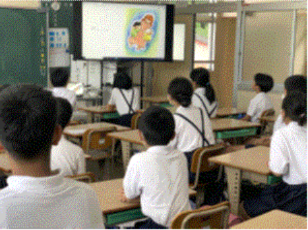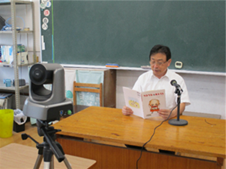 【学校での活用の様子】校長先生が全校生徒に読み聞かせを行って頂きました。