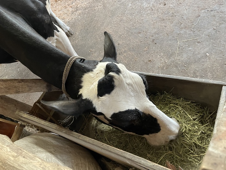 ハーブ入の牧草を頂いて大喜びのみんなです🐮🐮🐮🐮🐮