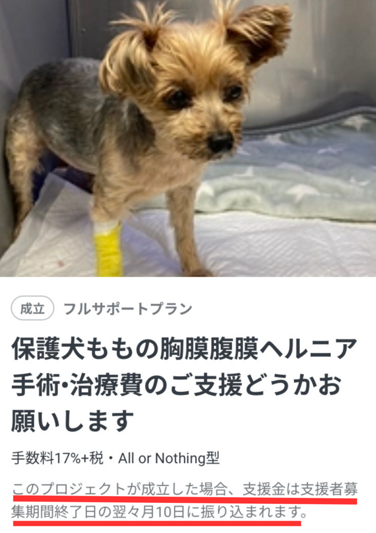 レディフォーより、皆さまからの大事な支援金が、入金されるのは、プロジェクト終了から2ヶ月後の、9月8日とお知らせがありました。支援者様にお伝えしたかったので今回投稿させて頂きました🥹
