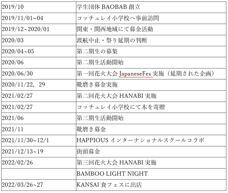今期は過去3年間とは違い、現地に足を運びお祭りを開催させていただくということで、BAOBABにとって大きな第一歩を踏み出すことになります。
