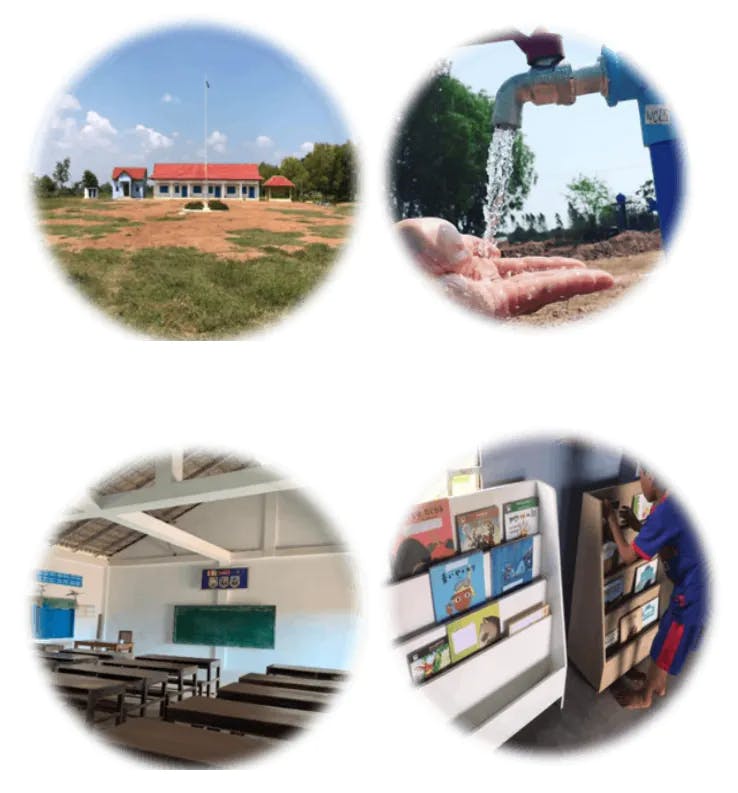 学校は三教室のコンクリート校舎になり、グラウンド・図書館・手洗い場・排水溝・校舎内には電気も整備された。