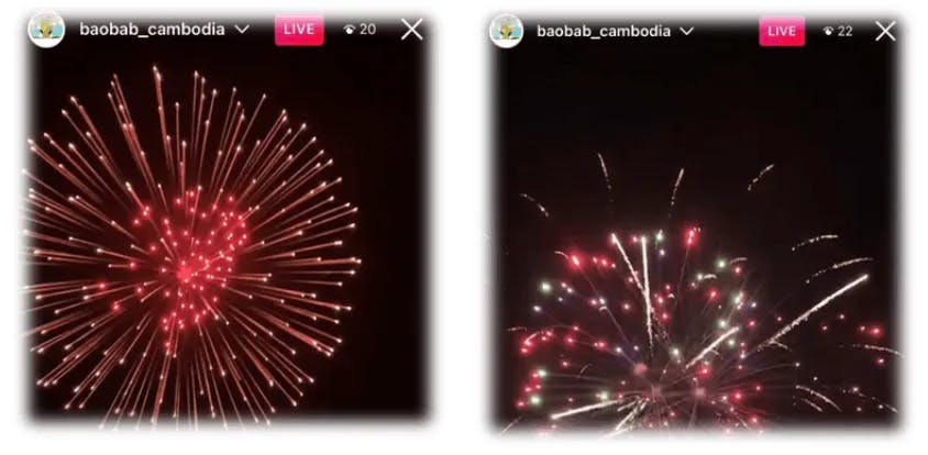 現地へ渡航できなかったため、活動支援者様のご協力のもと、日本とカンボジアをオンラインで繋ぎ、企画を実施しました。花火大会の様子はYouTube、Instagramにてライブ配信しました