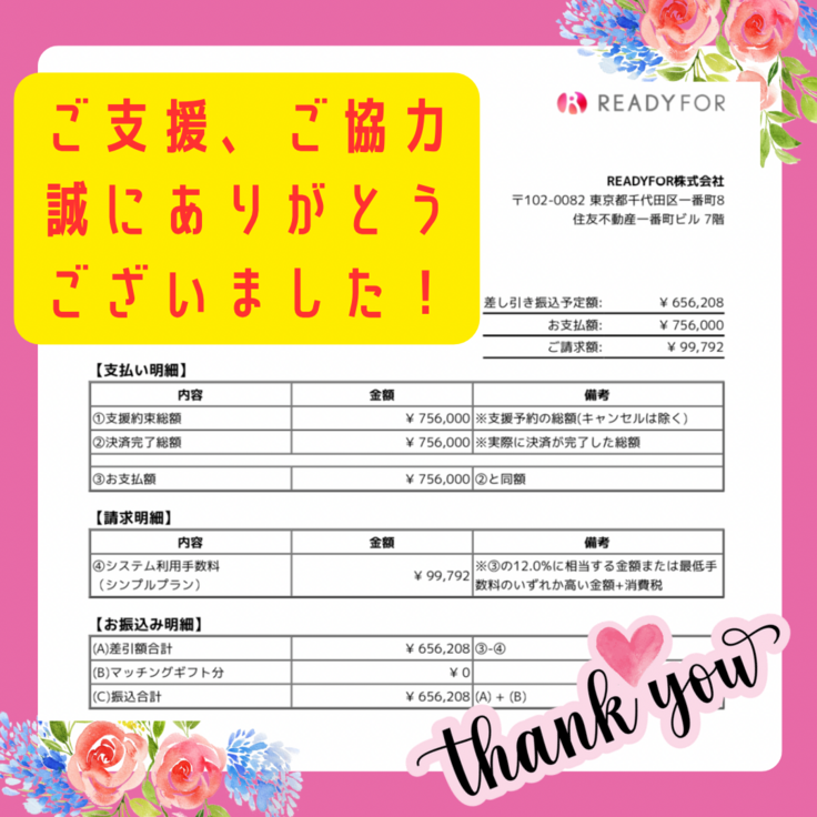 4月10日付で、無事皆様のご支援を受け取ることが出来ました。