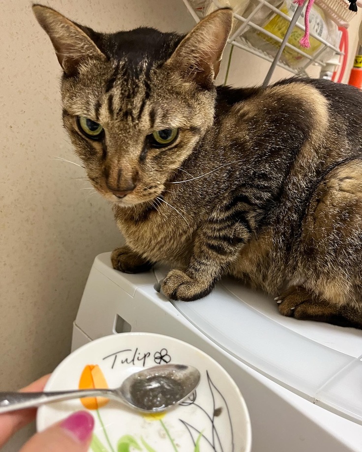 3月以降は食欲もなく、4月に入ってからはほんの少しのかつぶしと、腎臓に負担の少ないペースト状のおやつを少しずつ与えていますが、脱水が心配で、獣医師と相談の上点滴や注射をしている状況です。