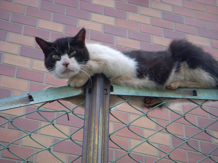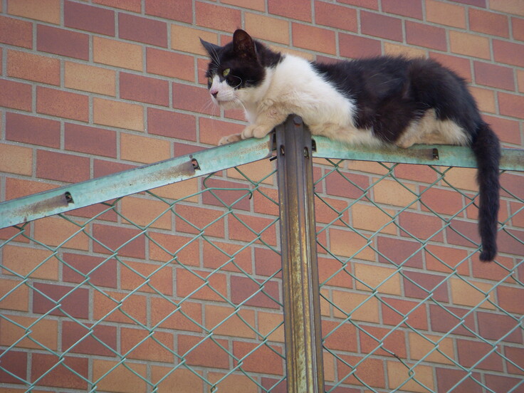 金網フェンスから こちらを睥睨しています