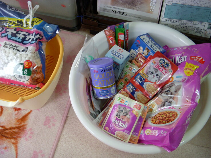 O様から頂いたフードとウチにあるミルクや哺乳瓶、トイレなどと一緒に送り出します