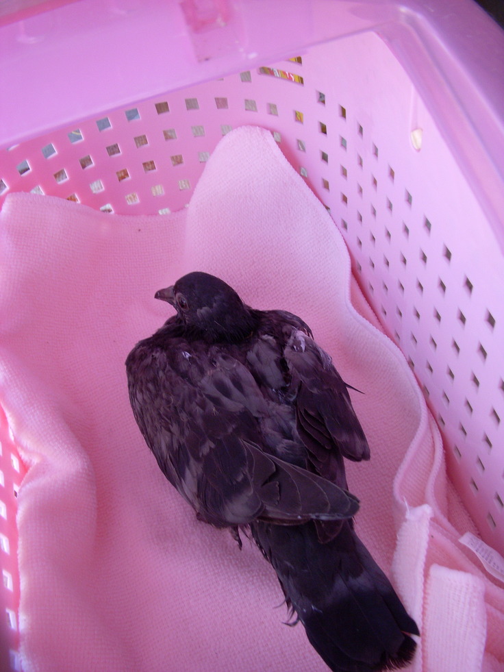飛べずに 転げてたのを 拾い上げると カラスにやられたのかな? 数か所 ガッツリ深い傷があり 出血してる
