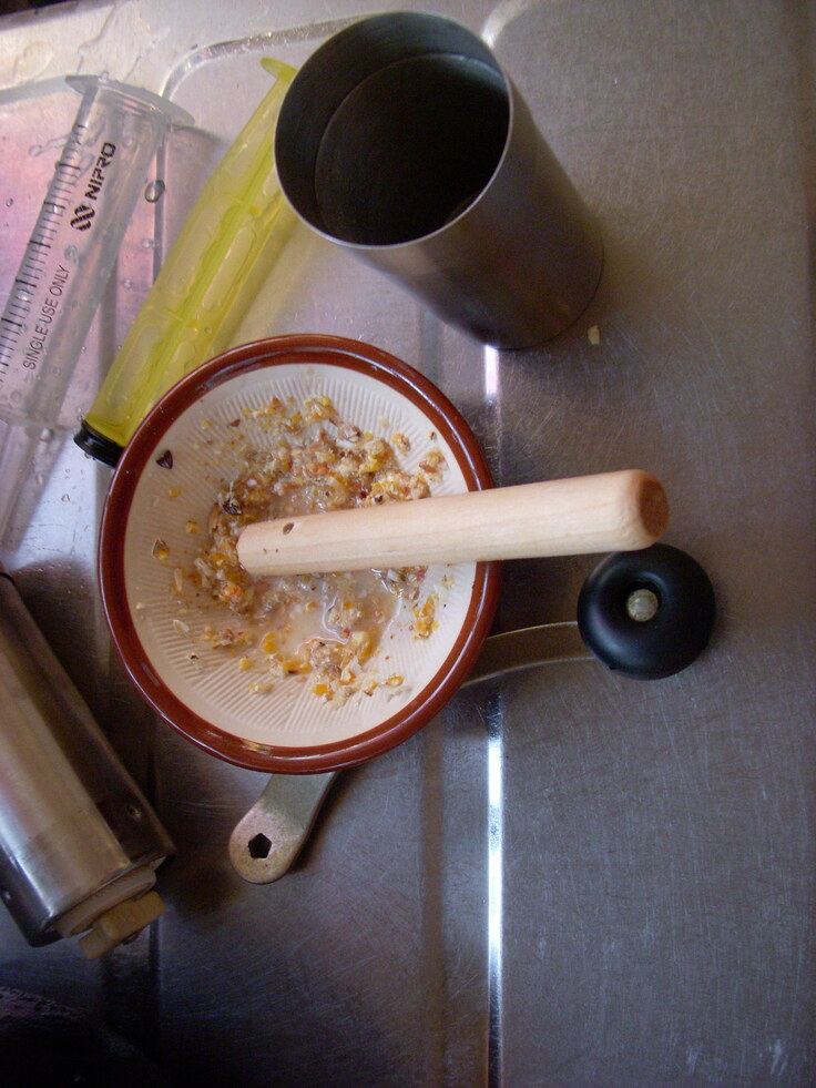 アモキシシリンと砂糖を添加した温牛乳を飲ませ キャリーに入れてます