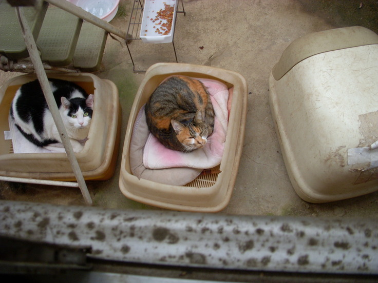 (右隣の三毛は あまり馴れてないので 昼は裏庭で過ごしてます)