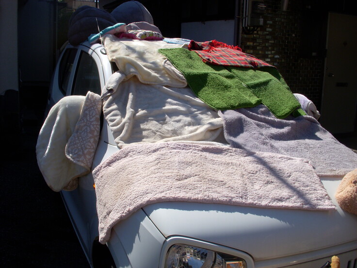朝夕、冷えて来たので 猫用冬布団を天日干しです