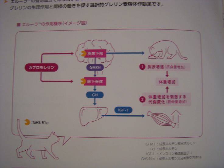食欲ホルモンのグレリンと同じ作用で ❶グレリン受容体に作動し、食用中枢を刺激!