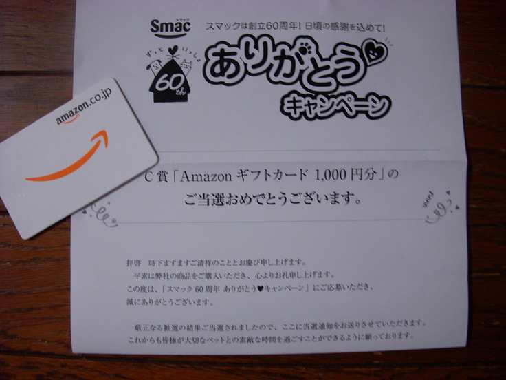 なんと Amazonギフトカードが 当選