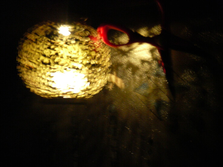 昼間、太陽光を充電させた ソーラーライトを窓辺に吊るす!!