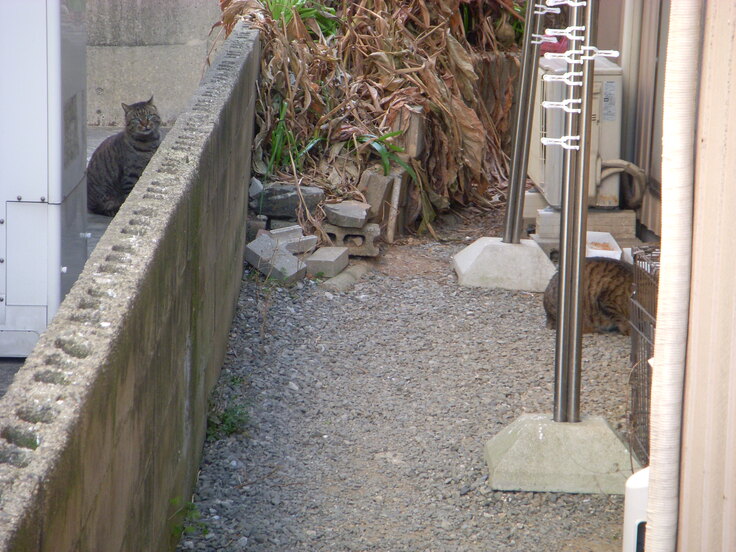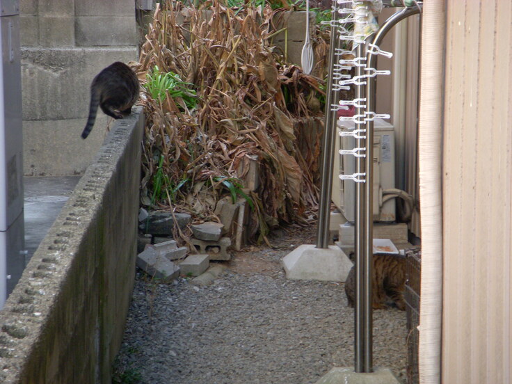 モカが居るのに気づいて 逃げていきました