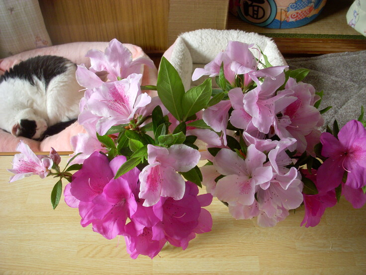 往診先の庭から パクってる躑躅もそろそろ終わり