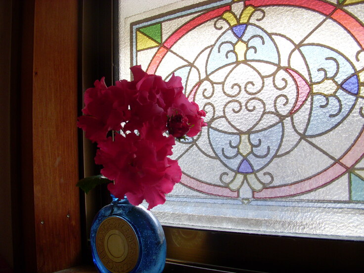 ステンドガラスをバックに ニャイスショットΣp📷ω・´) 🌹