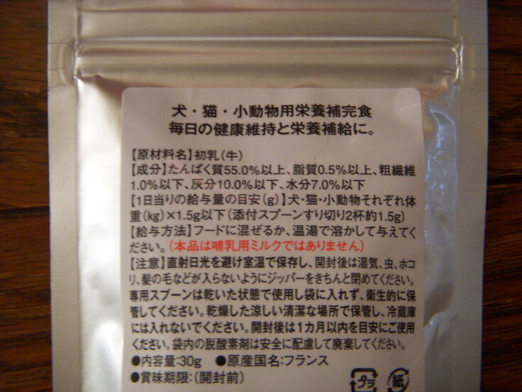 (哺乳期については哺乳用ミルクに添加するか初乳入りのミルクをお奨め致します。)