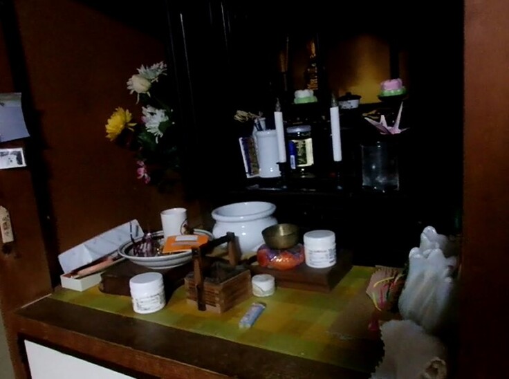 なかでも私が驚かされたのは、この家に以前住んでいたと思われるお祖父さんの遺影や仏壇が残っていたことです。