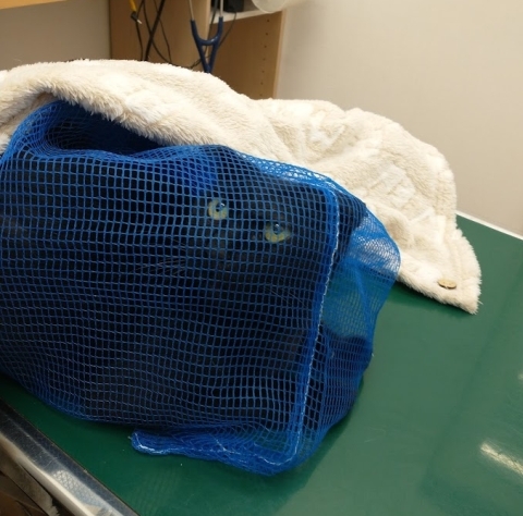暴れないようにネットに入れておくことに。