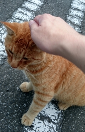 大きな身体のチャトラ猫が、駐車場の隅から姿を現しました。