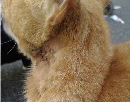 こうして忙しい日々を過ごすなか、またもやチャトラが首元をケガしてしまいました。