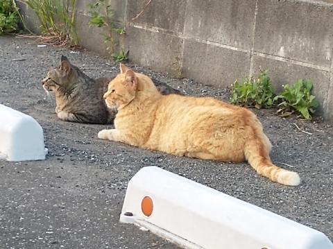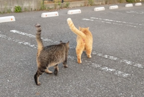 しかも、チャトラは完全に私の方に気を取られていて、後ろからキジトラ猫が近づいていることに気付いていなかったのです。