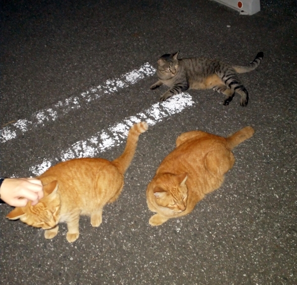私は駐車場でのんびり過ごすチャトラと流れキジを見ながら、たとえ束の間でも私がお世話することによってこの子たちが安息の時を送れることに喜びを感じていたのです。
