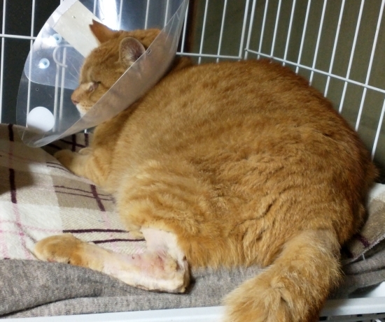その後チャトラは無事にケガから回復してくれましたが、完治するまでの間はケージ暮らしが続くことになってしまいました。