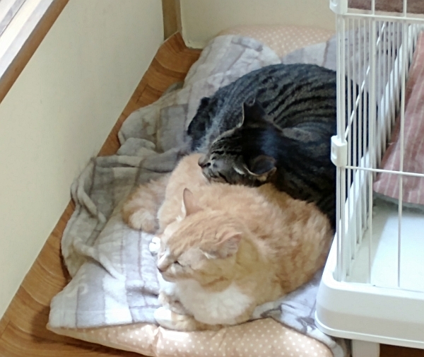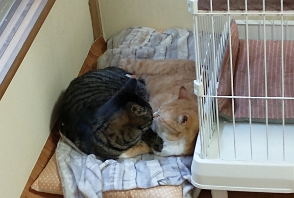 次に2階メンバーの様子ですが、チャトラはお腹の調子こそ安定しないものの、静かな部屋でのんびりと毎日を過ごしています。