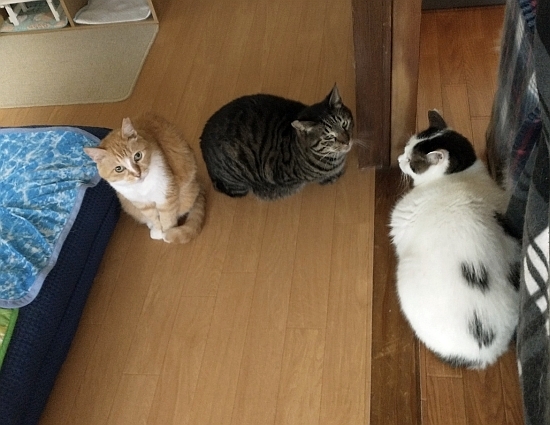 私の家の駐車場で暮らしていたえりちゃん、山奥の畑で暮らしていたともくん、とあるお店の駐車場で暮らしていたスカー、というように何の接点もなかった3匹が心を許し合う仲になり、一緒に暮らしている姿は感慨深いものがあります。