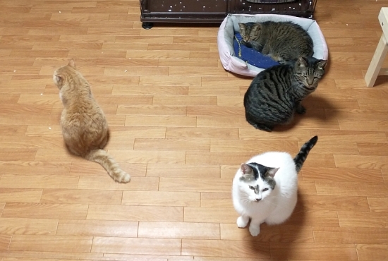 1階とは違って2階には新しい仲間がやってくることはありませんので、チャトラと流れキジにとっては静かながら単調な毎日に感じられるかもしれません。