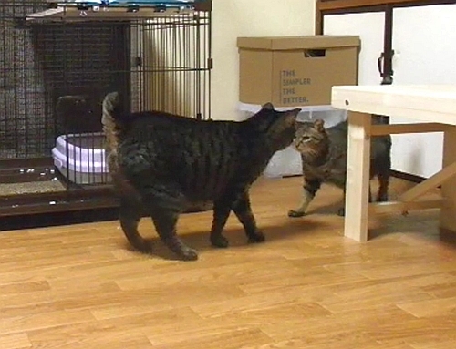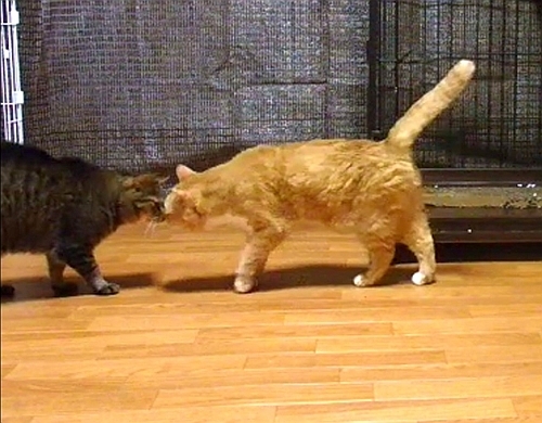 流れキジもボス格のチャトラには敵わないと本能的に悟ったのか、2号に対して唸りながらケンカを仕掛けていきました。