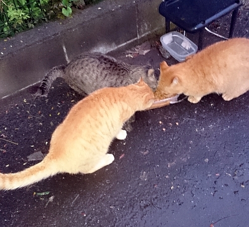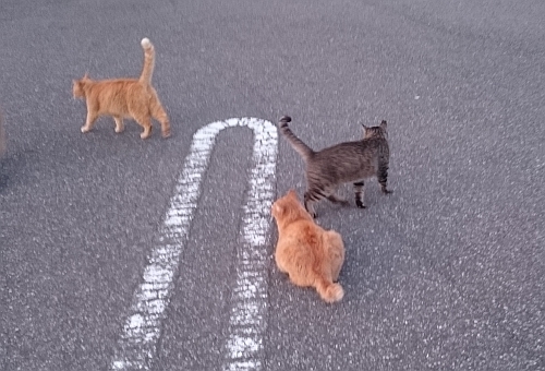 他の子が食べているご飯を横取りしたり、メス猫や弱い猫を追いかけまわしたりなどなど、キジトラのせいで平和な駐車場の暮らしが一変してしまいました。