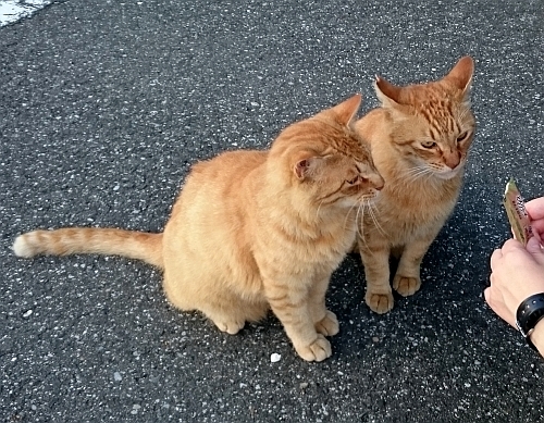 いつものようにチャトラと2号のところへご飯を置きに行くと、2号と流れキジが身体を寄せ合いながら私のところに駆け寄ってきました。