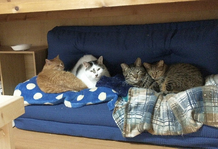 最初のうちは面識のない4匹をひとつの部屋で暮らさせるのは心配でしたが、全員が心を通わせて仲良く過ごしているのを見ていると、無事に保護できたことが本当に嬉しく思えてきます。