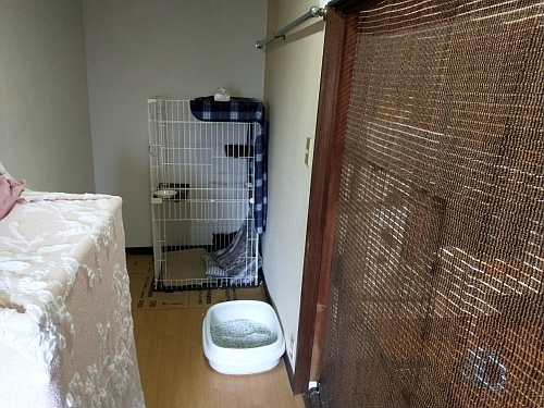 シェルターでは唯一のメスで猫エイズ陽性のクロママに、専用の居住スペースを作る目的もありました。