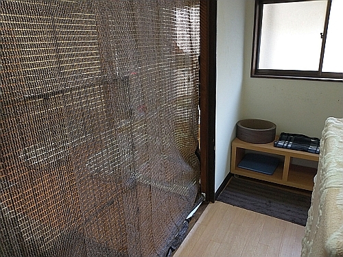 その結果、私が部屋を区切るものに選んだのが、バルコニー用のサンシェードです。