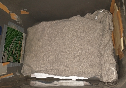 タオルやバスタオル以外にも私の着なくなった古着など、気兼ねなく使い捨てできるものも寝床ボックス用に投入しています。