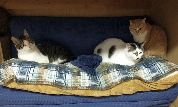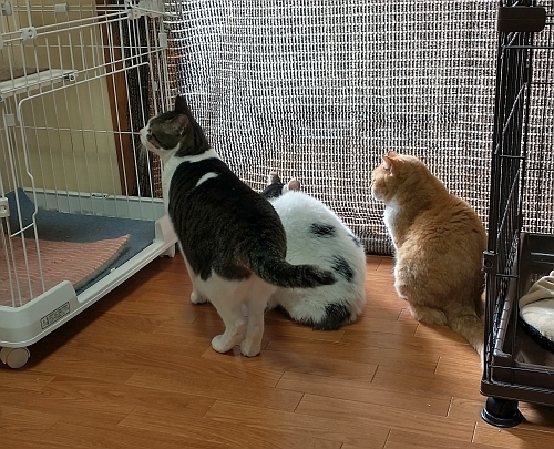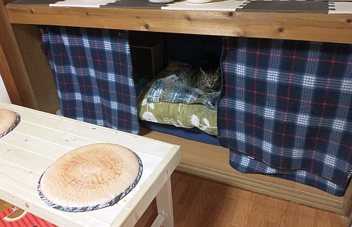カーテンと言っても薄いブランケットですし、ほんの気持ちばかりの防寒対策でしたが、猫たちには大好評でした。