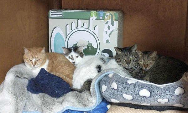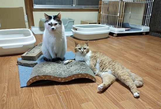 まず、1階の猫たちの様子ですが、みんな仲良く穏やかな日々を過ごしています。