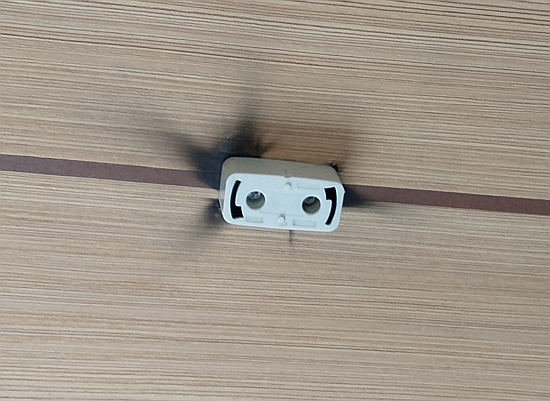 すると、照明器具が設置してある天井周辺に焦げ付いた跡が見られたのです。