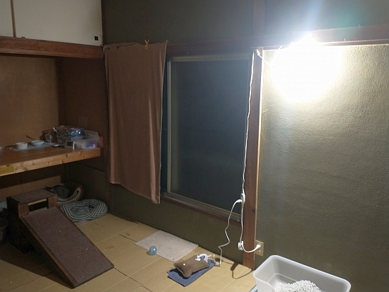 ある日の夜、いつも通りにチャトラと流れキジの部屋に入って照明のスイッチを点けたところ、全く反応せず部屋は暗いままだったのです。
